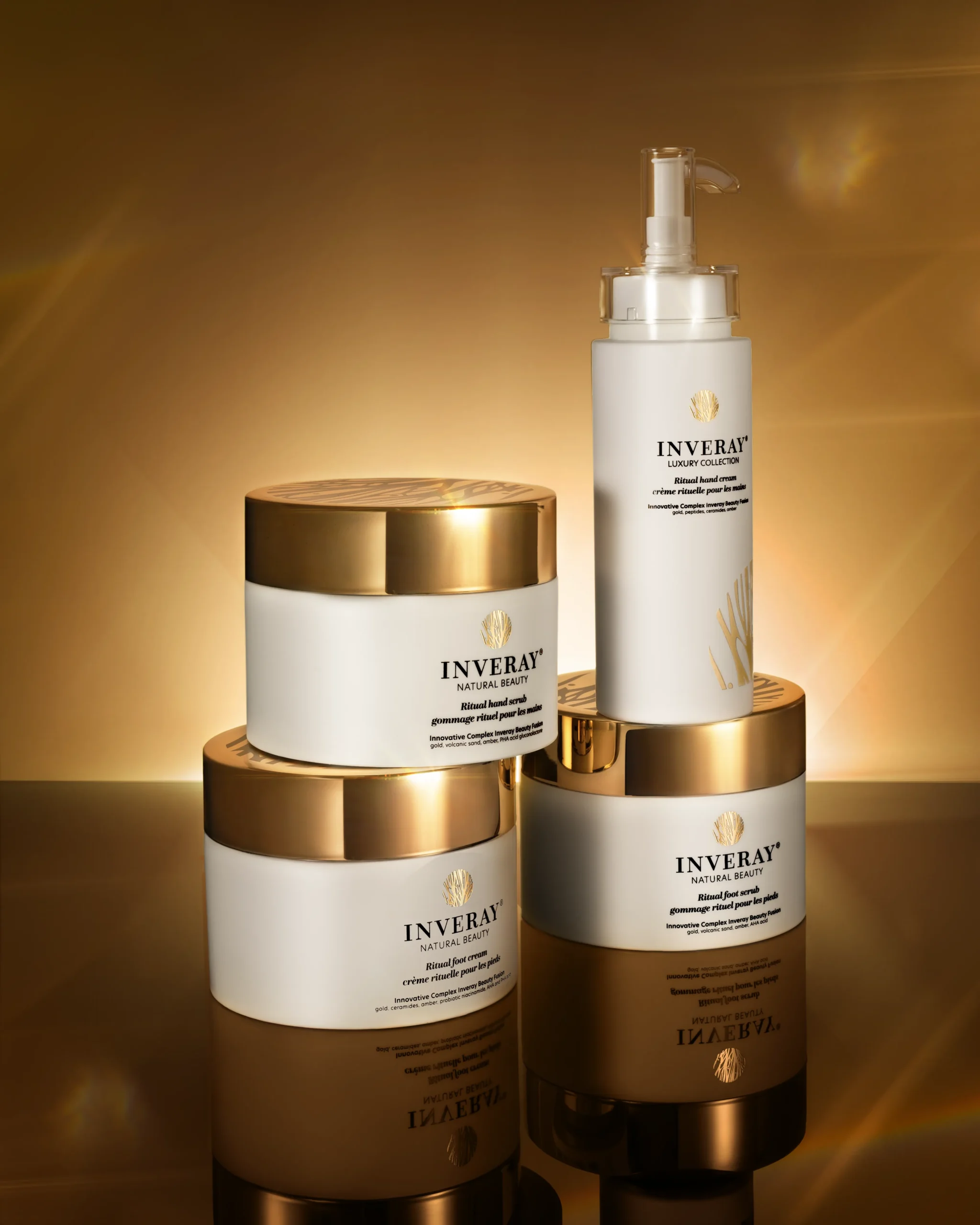 Entdecken Sie die Essenz luxuriöser Hand- und Fußpflege mit der bahnbrechenden Inveray SPA-Kollektion – sie enthält neben anderen Wirkstoffen die weltweit anspruchsvollste Kombination aus Bernsteinsäure, Peptiden und Meeresbambus.