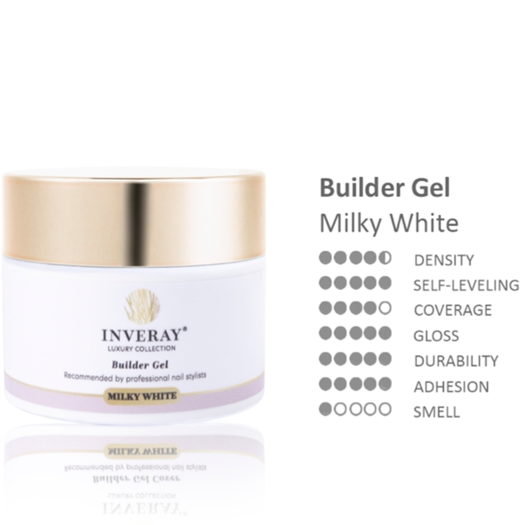 - Żel Builder Gel Cover White – to jednofazowy, samopoziomujący żel budujący. Formuła 12-free-of jest pozbawiona alergenów i substancji podrażniających. Builder Gel jest odpowiednio gęsty, co gwarantuje, że nie spływa na skórki ani nie rozlewa się niekontrolowanie podczas aplikacji. Po utwardzeniu w lampie UV/LED, Builder Gel jest równy, gładki i nie pozostawia porów. Builder Gel Cover White doskonale współgra z naturalną płytką paznokcia, co gwarantuje trwałość i estetyczny wygląd.