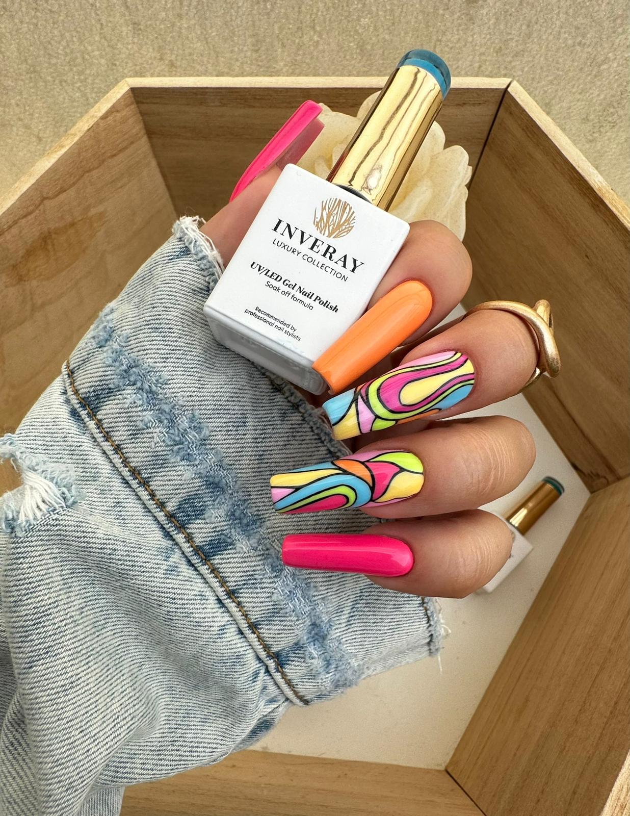 Neonowe kolory to absolutny hit w tym sezonie festiwalowym. Intensywne odcienie różu, żółci, zieleni, pomarańczu i błękitu są idealne, aby podkreślić energię i euforię towarzyszącą festiwalom. Te radosne odcienie na Twoich paznokciach będą nie tylko przyciągać wzrok, ale także wprowadzą pozytywny nastrój do Twojego całego outfitu.