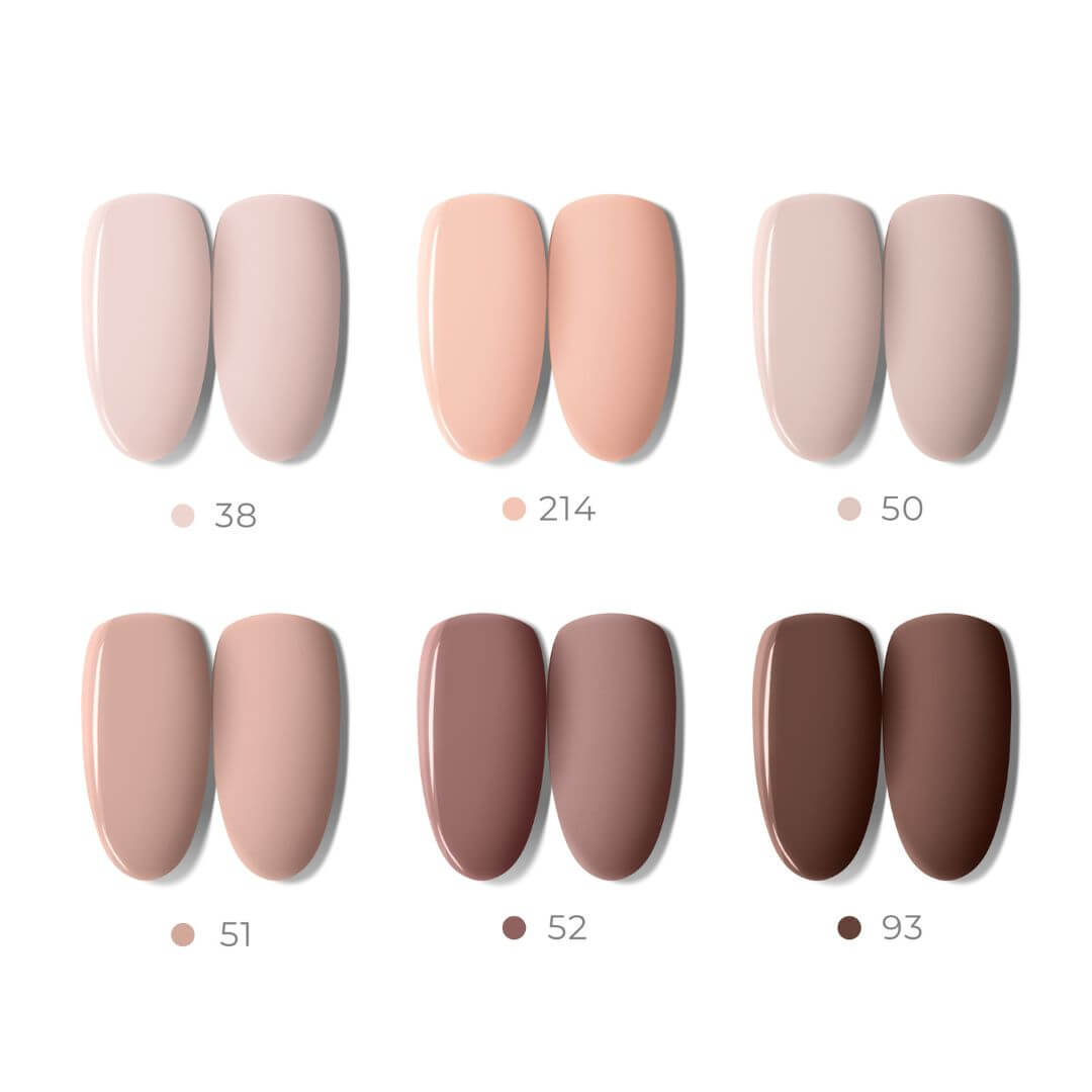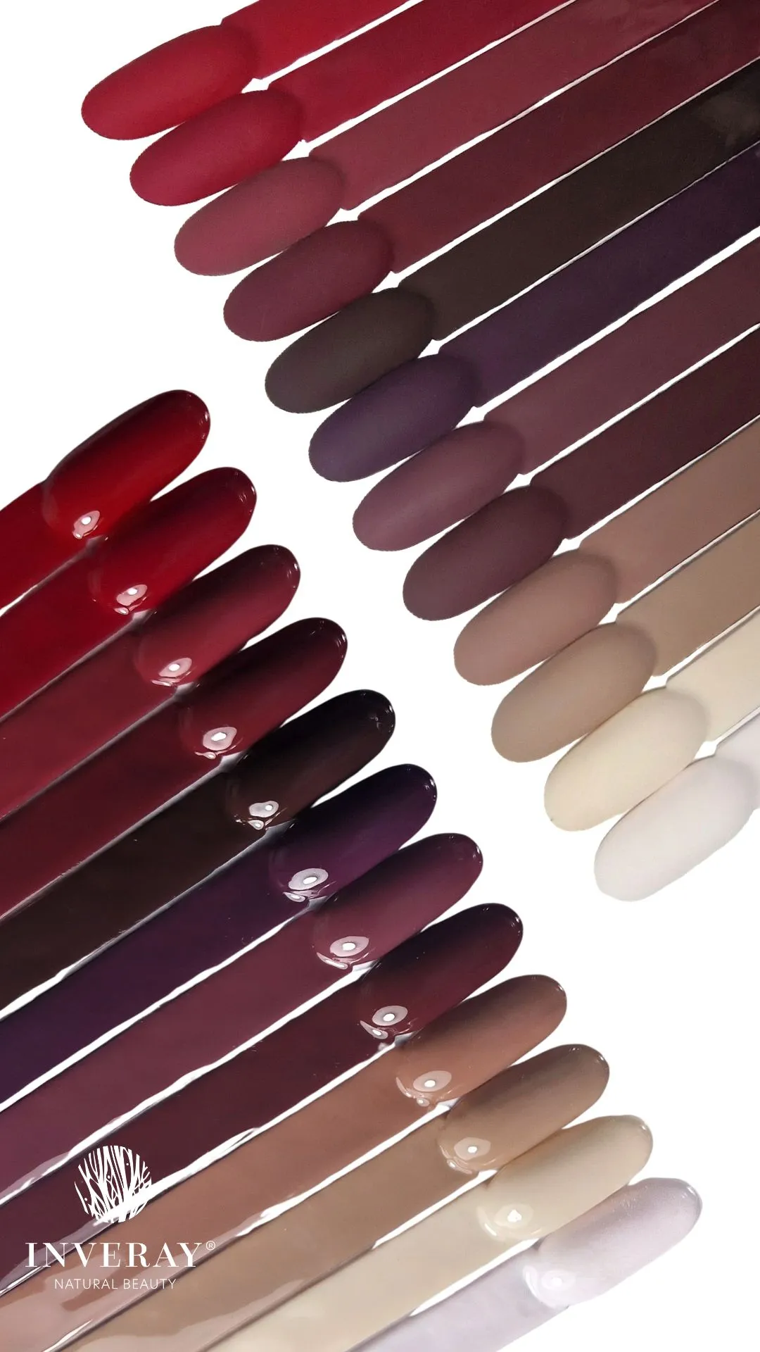 • Zgaszone pastele: Ciepłe, stonowane odcienie, takie jak pudrowy róż, brzoskwiniowy beż, czy zgaszona lawenda w sklepie INVERAY lakiery hybrydowe w wybranych kolorach znajdziesz pod numerami: