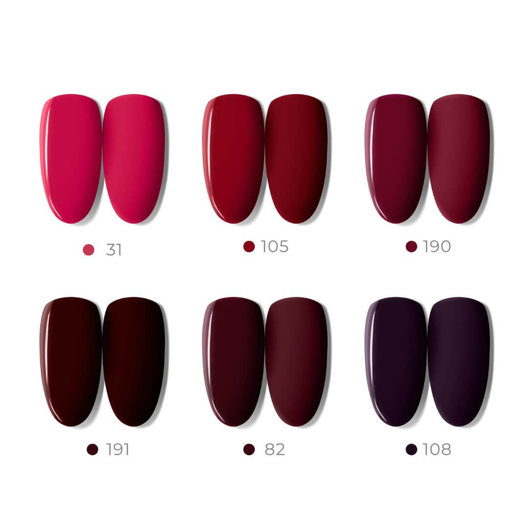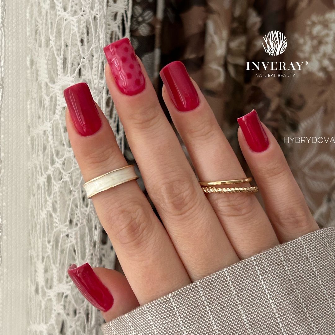 • Kolor czerwony Symbolizuje pasję, energię, odwagę i pewność siebie. Może dodawać poczucia siły i atrakcyjności.  Czerwień to kolor pełen pasji i energii. Przywodzi na myśl niebezpieczeństwo i ekscytację, a zarazem miłość i determinację. Spośród odcieni  lakierów hybrydowych INVERAY, możesz wybrać dostępne kolory czerwieni by wyeksponować swoją odwagę i pewność siebie.