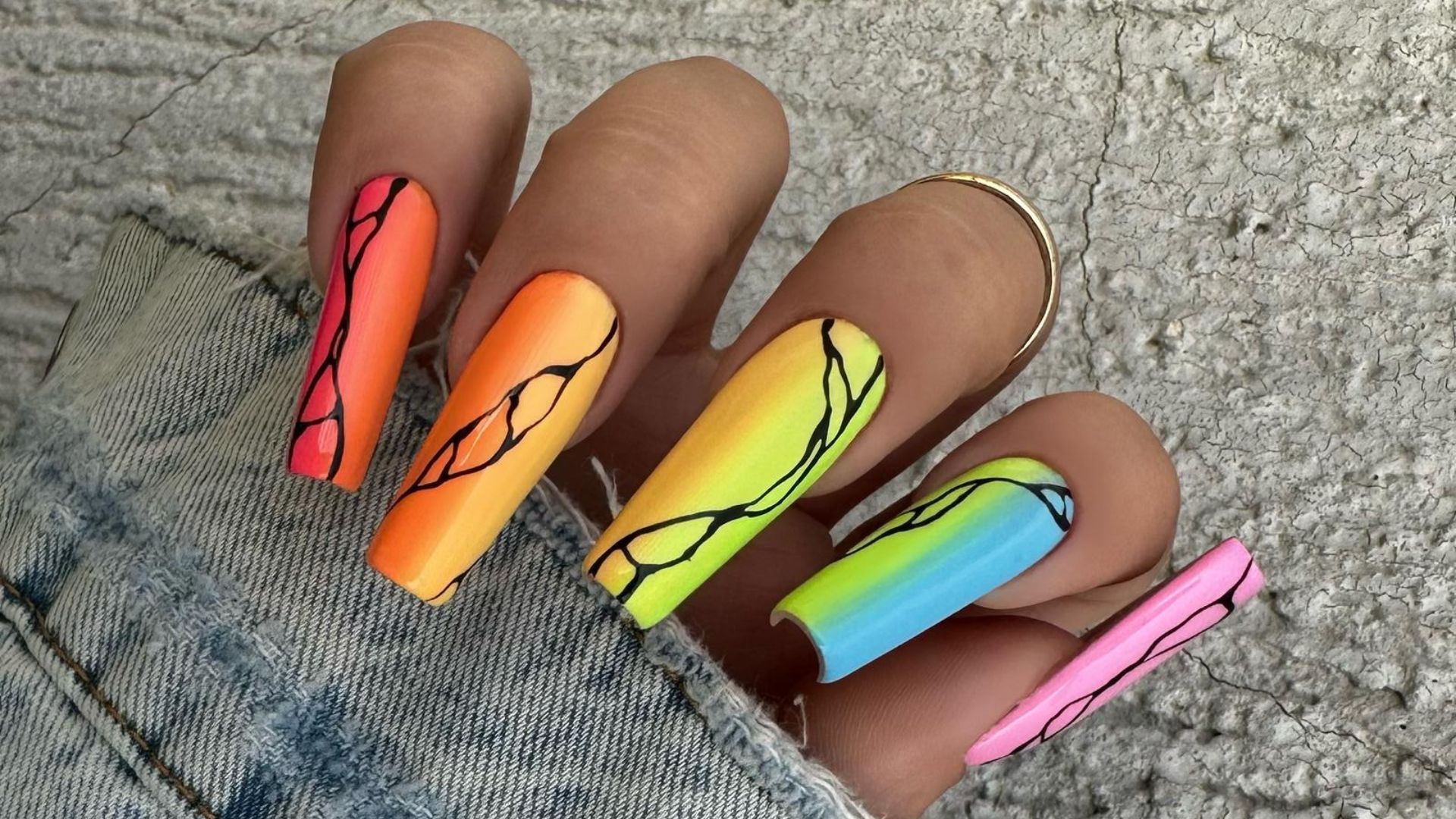 - Ombre w Neonie: Stwórz subtelne przejścia między neonowymi odcieniami na każdym paznokciu, tworząc efektowne ombre. To idealny sposób na połączenie różnych neonowych kolorów, dodając paznokciom wyrazisty charakter. Paznokcie ombre neonowe pasują na przykład na wesele lub wakacyjny urlop.